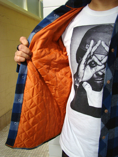 ネルシャツの裏側にキルティングを貼りつけたシャツで