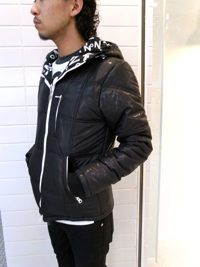 シャイニーなフード付きブルゾンです。