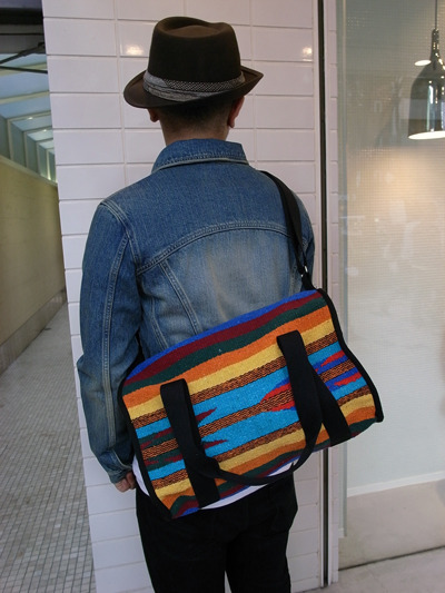 ジャケットを作った残りの廃品のラグ生地で作っています。