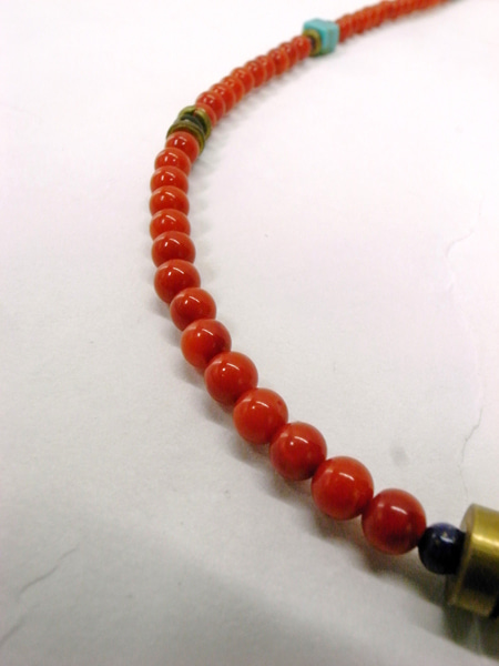 赤い珊瑚やターコイズ後ラピスラズリなど昔希少で魔除けやお守りとして使われていた物で