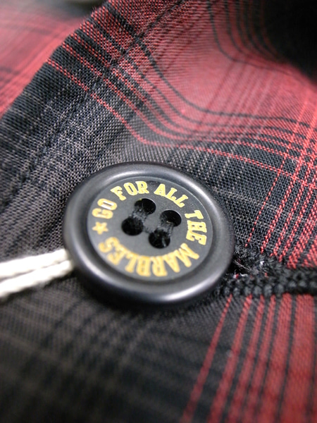 オープンカラーのチェックにスタッズが打ち込まれています。