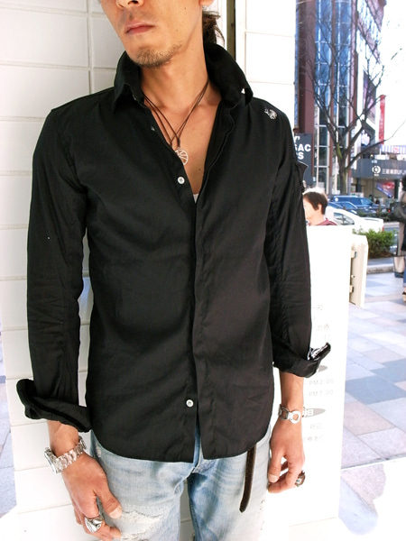 そして袖のポケットのエポーレットにもスカルのボタンを付けました。