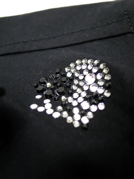 左胸の若干上にスワロフスキーでMORKSのアイコンフラワースカルが入っています。