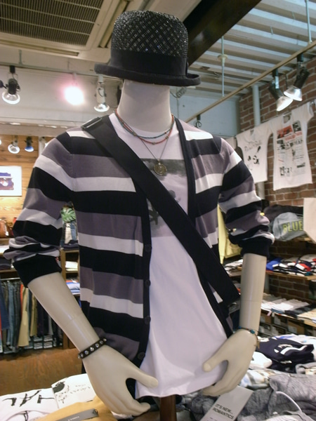 TRYSTのボーダーカーデにRC SURFのTシャツ