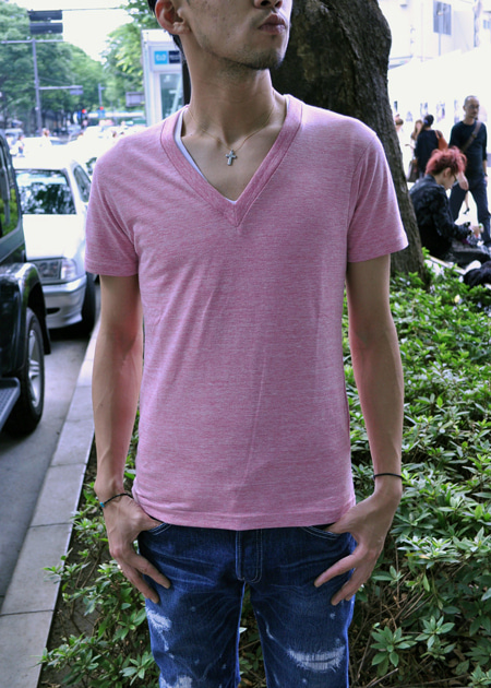 無地のV-NECKは良い物を着ないと貧乏くさくなってしまうのでこれは絶対お奨めです。