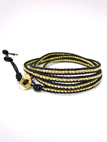 ブラックのレザーにシルバー925のビーズに18金メッキが施された物