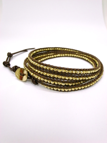 ブラウンのレザーにシルバー925のビーズに18金メッキが施された物