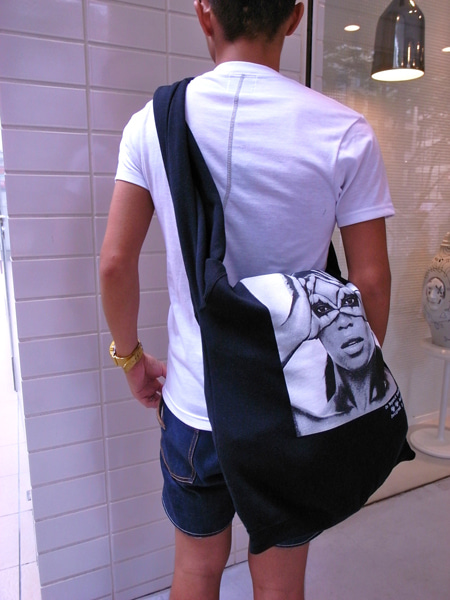 単純にトレーナーの袖とウエスト周りを縫いつけてショルダーに仕上げた物ですが