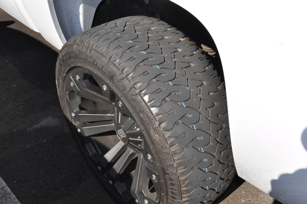 この自動車はピックアップトラックなのですがタイヤがなんとファイヤーパターンです。