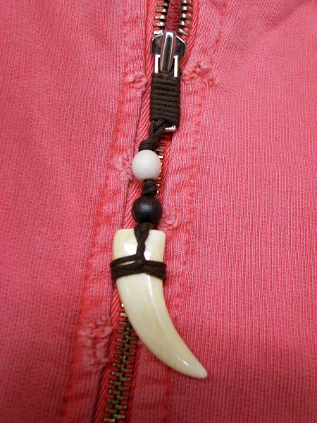 ジッパーは牙を模った物を使い