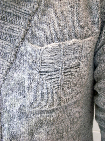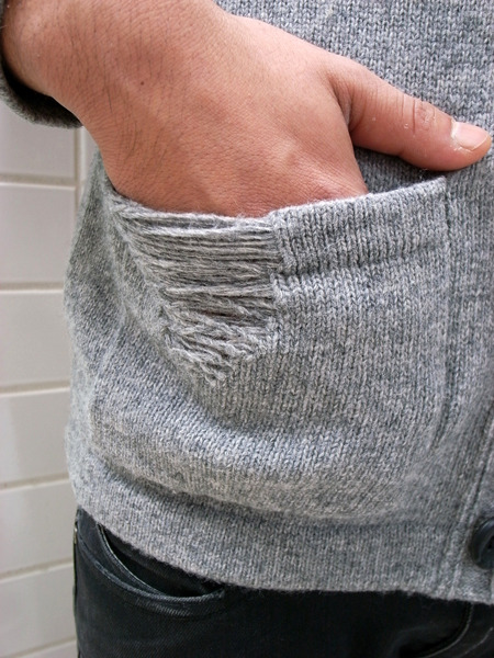 ポケットなどにほつれた様な編み方でダメージが入っています。