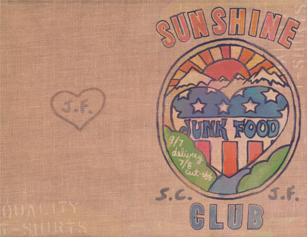 丈もシャツぐらいの長さでステンシルのプリントが目を引きます。