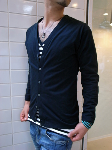 厚手のTシャツのウエイトでタイトでシンプルなカーディガンです。