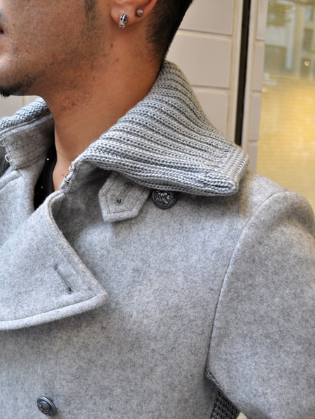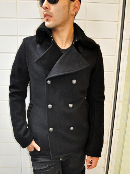 全体のポイントとして綺麗めのピーコートやレザーにはこれぐらいのダメージが良いかと思います。