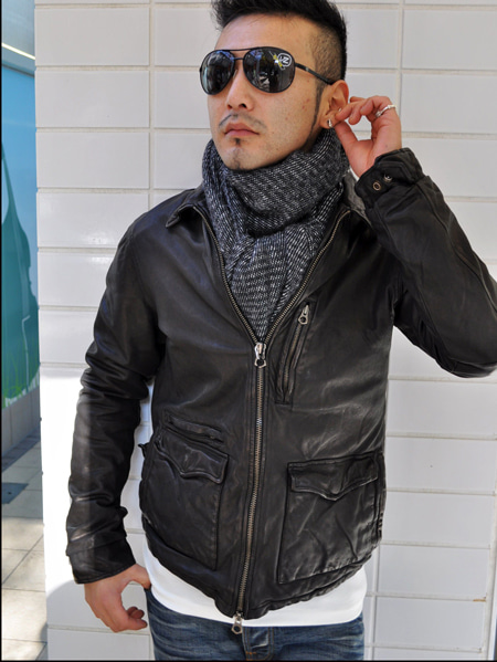 ヴィンテージのフライトジャケットをベースにデザインされた物でシルエットはタイトです。
