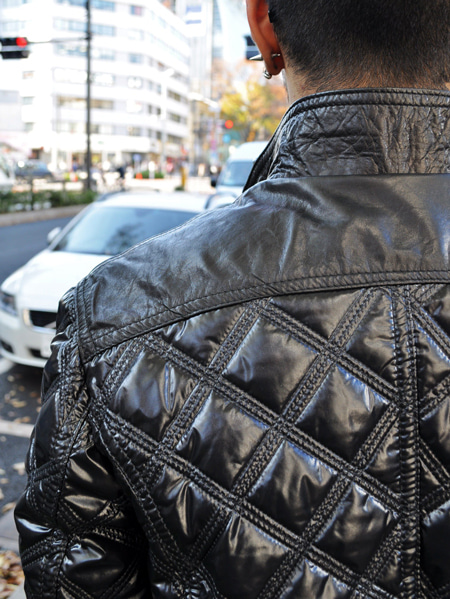 レザーは上質の薄く削られたものを使っているので、着ていてナイロンとの違和感が有りません。