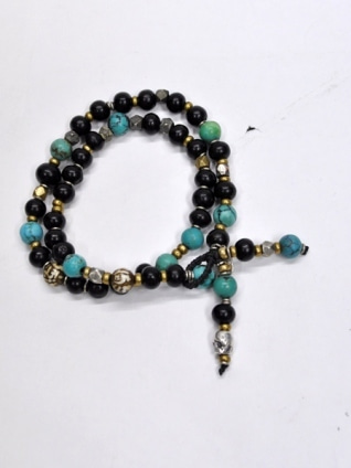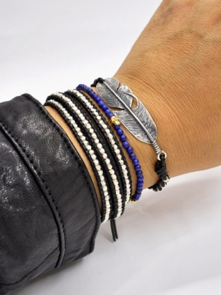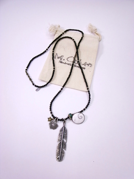 オニキスのビーズとシルバーのビーズを合わせた物にジャラッとフェザーなどを付けたネックレス