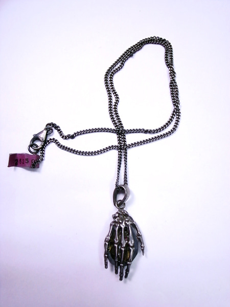 そしてサメの歯の化石にシルバーで出来たスカルを組み合わせて作ったペンダントチェーン自体を手作りで作っています。