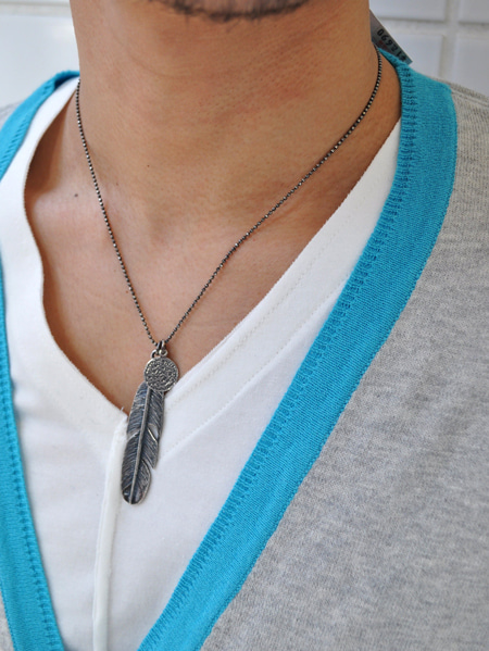 前回入荷したフェザーのネックレスが長めの物だったのでより使いやすいように18インチで作ってもらいました。