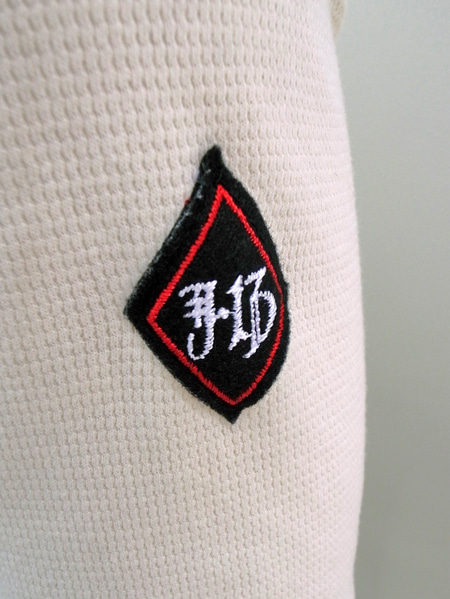 袖のパッチは定番です。