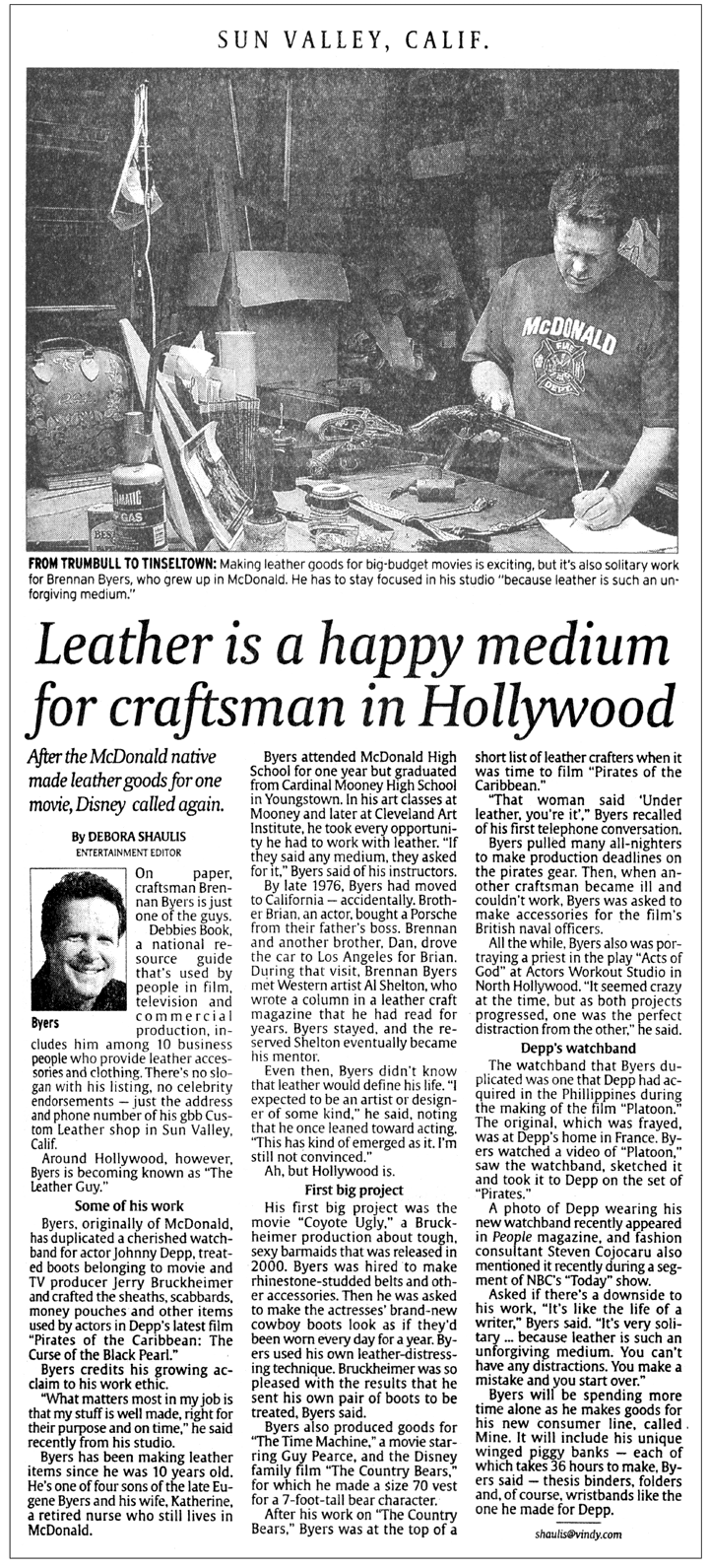 gbb Custom LeatherはLAの少し上のSUN VALLEYにる工房でハリウッド映画に使う小物などを作っています。