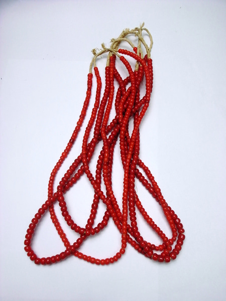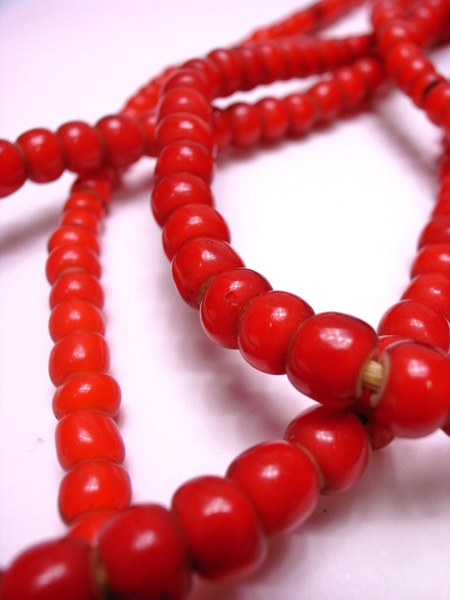 これは先週末アンティークのベネチアンビーズの赤が手に入りました。