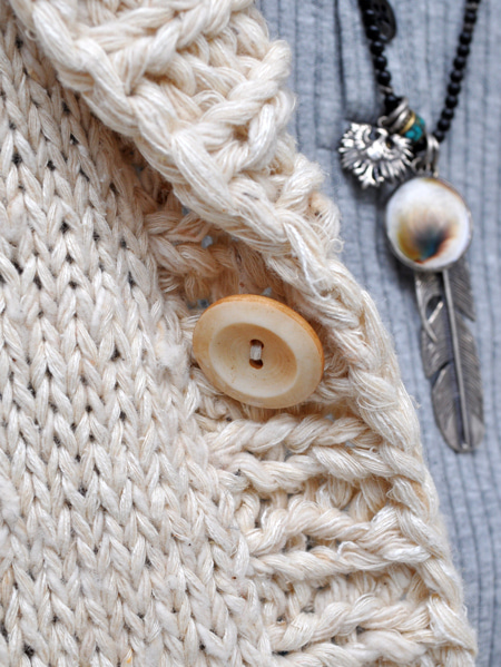 機械編みと違った、素朴な雰囲気で柔らかく軽い仕上がりです。