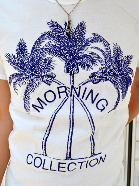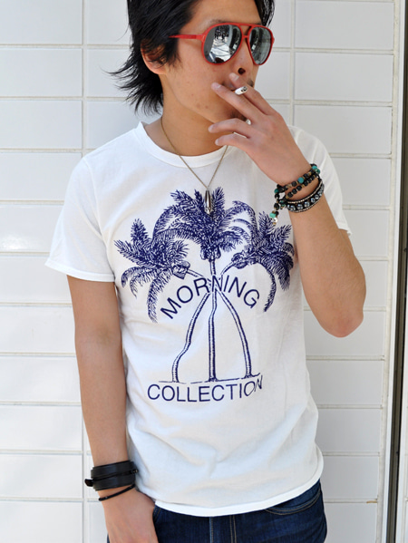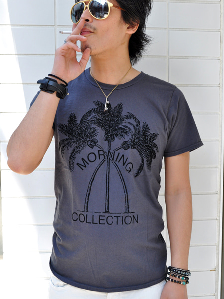 まず、MORNING COLLECTIONから、久しぶりの入荷はパームツリーをフロッキープリントしたTシャツ