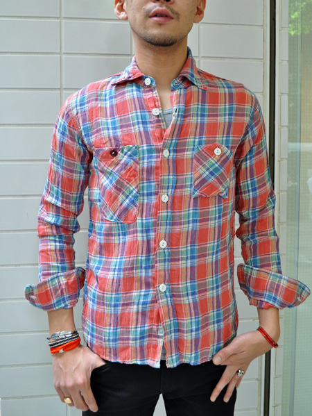 まず、FOBから麻とコットンを使用した生地で作られたチェックシャツの紹介ですが