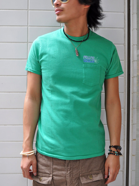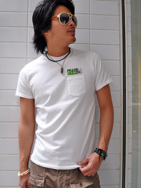ポケット上にGRASS草と書かれた70年代に良く見かけたデザインです。