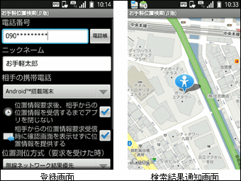 KDDIは2011年5月19日より、お客さまのauスマートフォンの位置情報 を、他のauスマートフォンやau携帯電話から検索できるアプリケーション「お手軽位置検索 (β版)」の提供を開始します 。