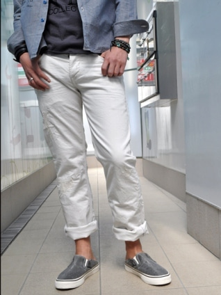 ホワイトのダメージパンツはあまり無いのでお奨めです。
