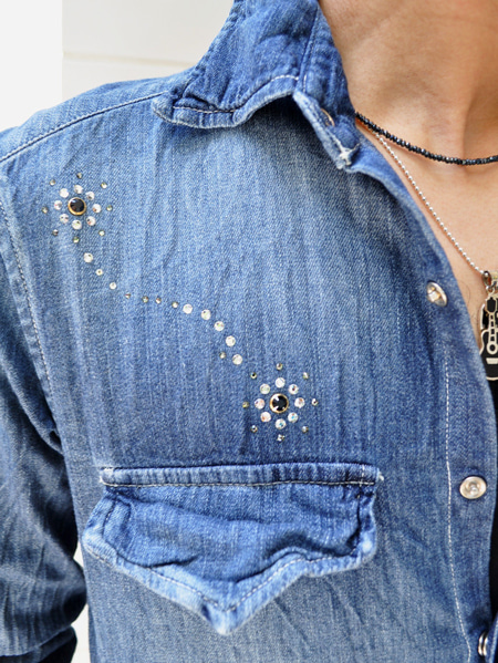 ヴィンテージ加工されたデニムで、シャツを長くしたようなデザインになっています。