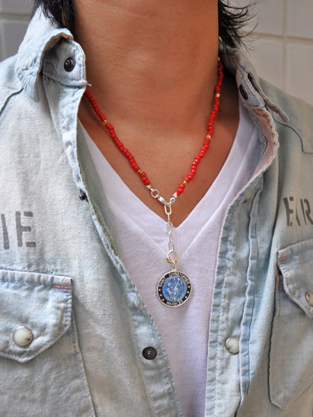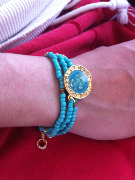 ますはビーズ使いでトップにセントクリストファーメダルが付いた物で