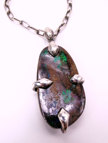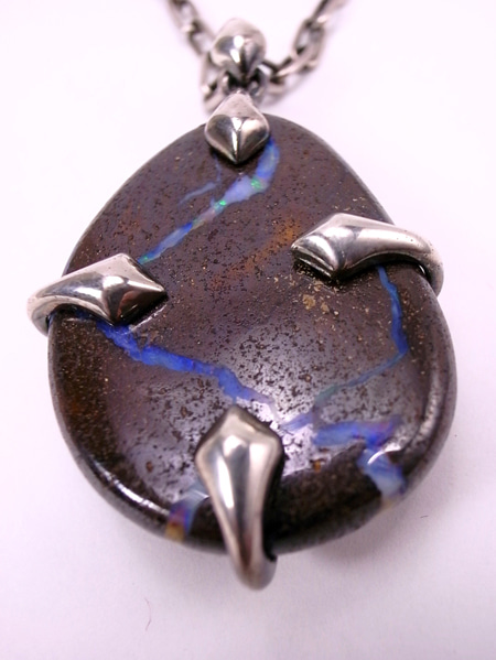 もう一点、ボルダーオパールの原石を磨きあげたネックレスです。