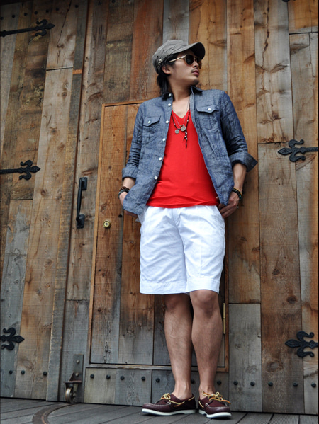 TOMOがエトフのシャンブレーシャツで合わせてみました。
