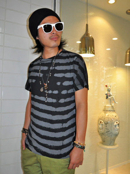 そしてM COHENのターコイズ・オニキスの一連ブレスを付けています。