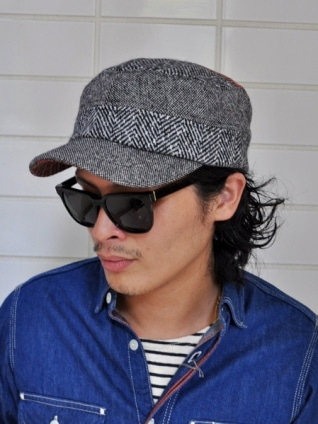 LIVER UPのツイードがクレージーの配置になっているミリタリーキャップ