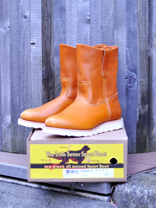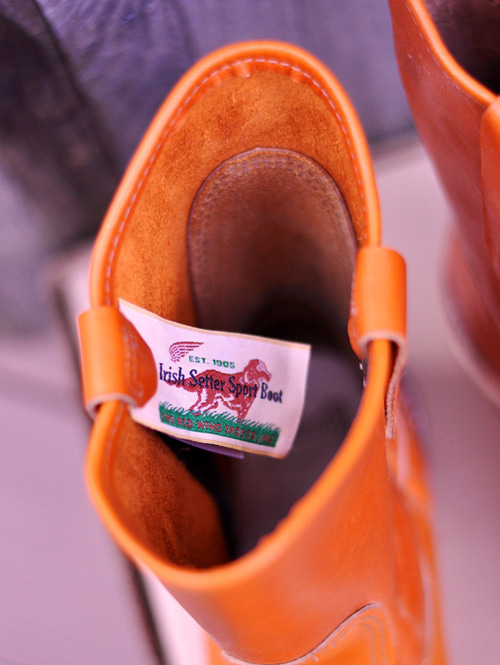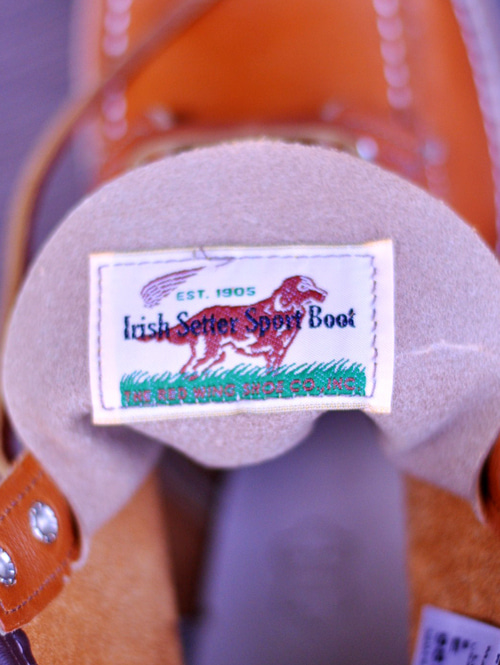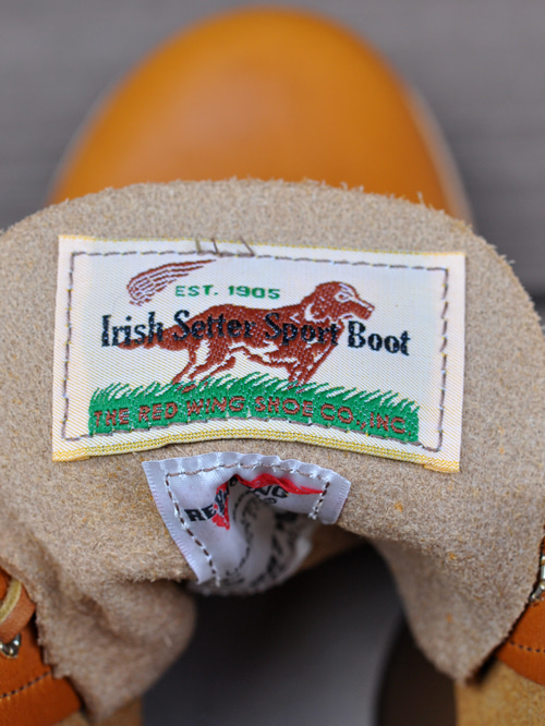 アイリッシュセッターは1950年、RED WING社のハンティングブーツのシリーズとして生まれました。セコイヤスギノの樹皮を使ってなめした、オレンジトーンを帯びた革、オロ・ラセット・レザーが猟犬アイリッシュセッターの経路に似ていたことに由来しています。