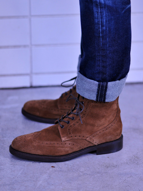 イタリアメーカーROSSO ARTIGIANのスエードのウイングチップブーツ