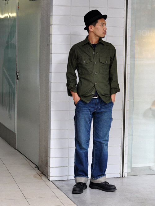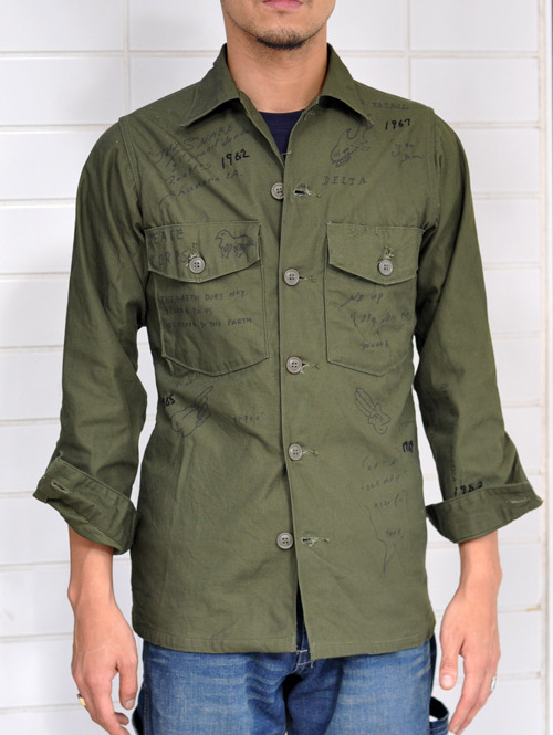 70年代以前のARMY UTILITY SHIRTをベースにタイトなシルエットに直し
