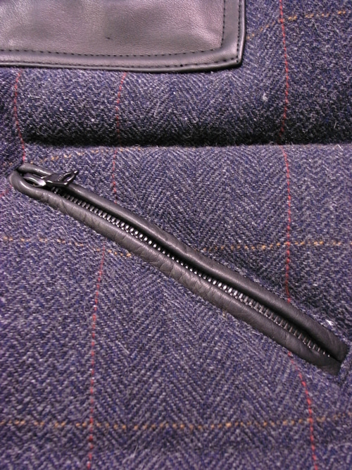 ポケットには、補強のためレザーのパイピングが付けられました。