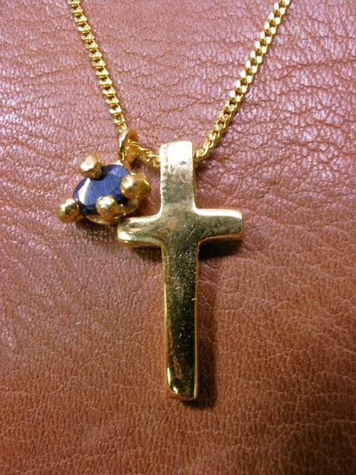 今回は大きめのクロスに、サファイヤを横に付けて貰いました。