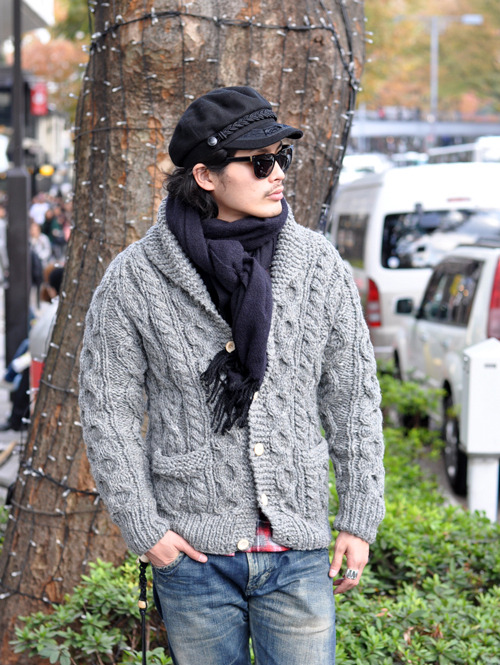 MONT LIVRE別注 手編ケーブルショールカラーカーデガン
