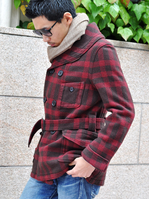 一般的に格子じまの毛織で,ベルト付きのダブルのショートコートをアメリカでこの様に呼んでおり、ウール100%の生地を使い丁寧に作られています。