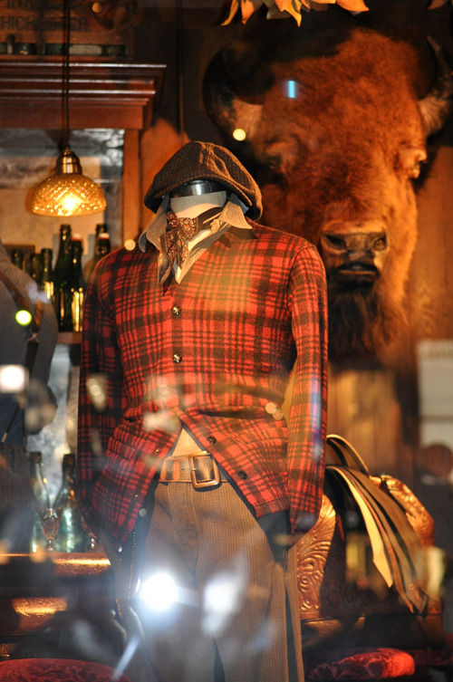 下の写真はRRLのディスプレーですがベルトはジョニーデップがしている横にずらしたやり方で