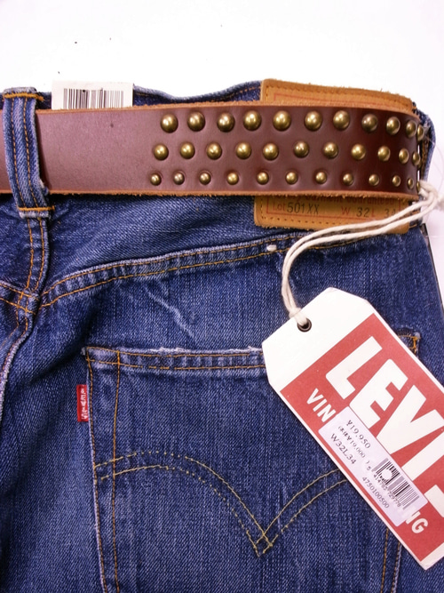 はめるとバックの中央のベルトループを挟んで、対象に並ぶようなスタッズの打ち方です。