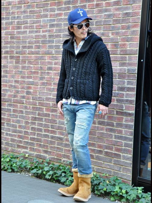 デザインはカーディガンにフードが付いたタイプなのでサーフなスタイルやアメカジなスタイリングに合うかと思います。