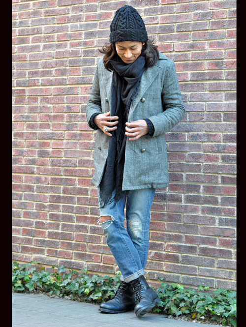 ピーコートにも少し飽きたと思っている方など、全く違った雰囲気になるのでよりアダルトなコーディネートでチャレンジしてみてください。
