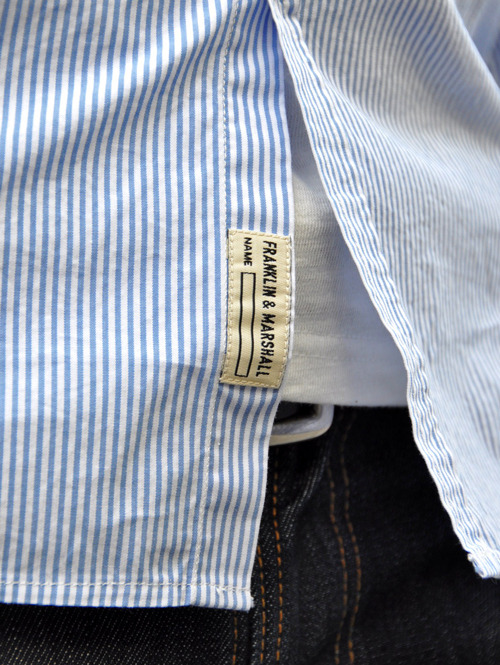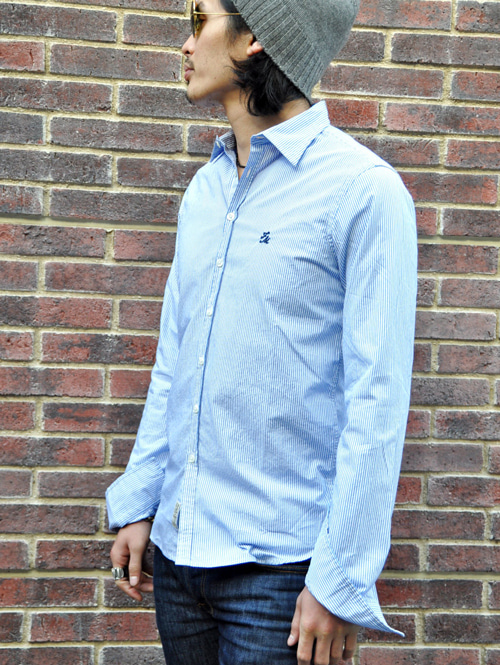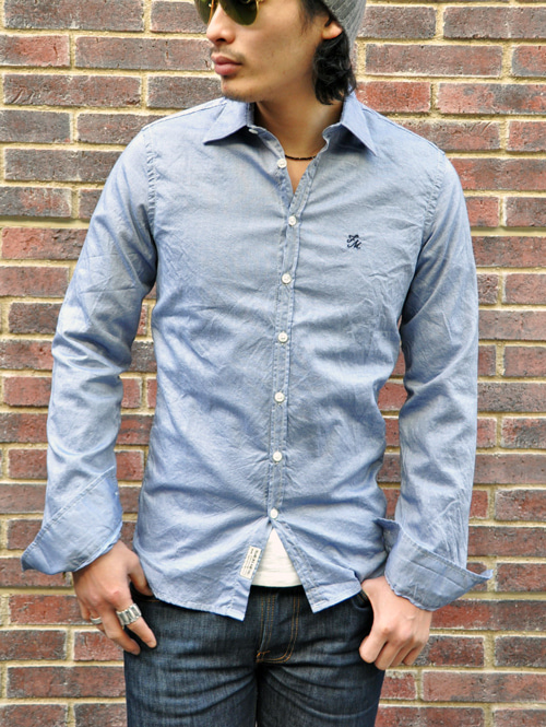 スタンダードなシャツですがシルエットが綺麗で胸にF&Mの刺繍が入っています。